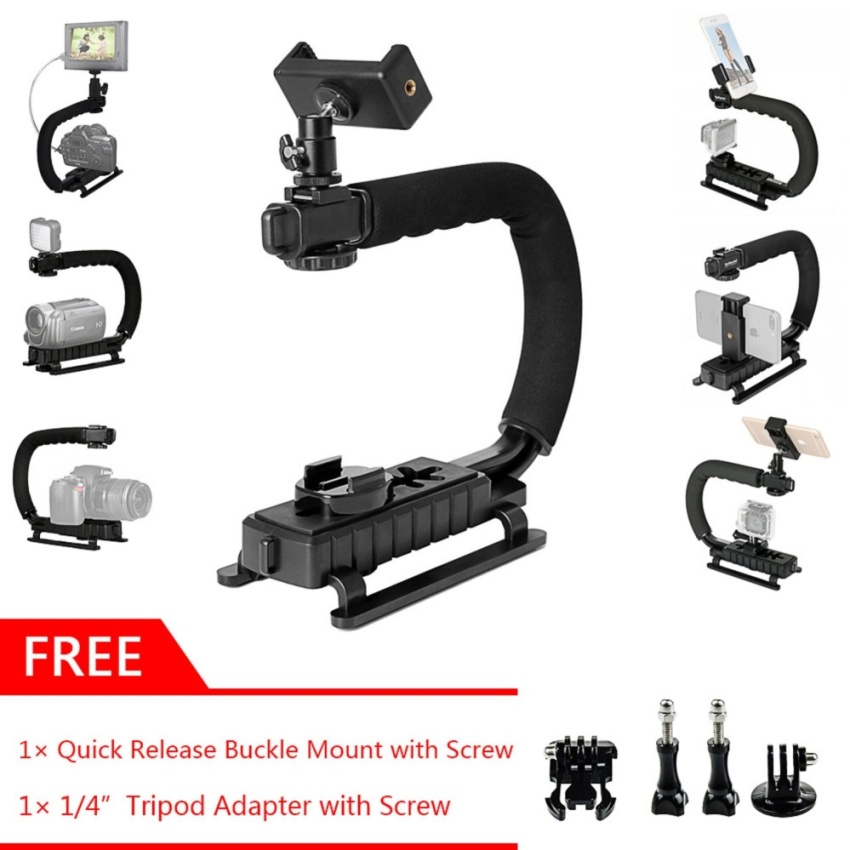 GearBear 6 in 1 C-Shape Rig Low Angle Position Steady Cam Handheld Stabilizer handle Grip + Smart Cellphone Holder + Hot Shoe + Gift Tripod Adapters Mount For GoPro Hero 5 4 Session 3+ 3 2 1 Action Camera DSLR Camcorder etc | Image source: Lazada