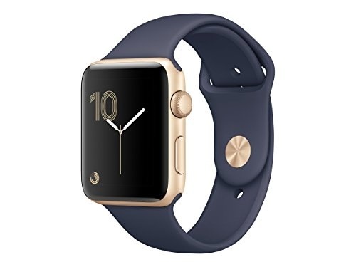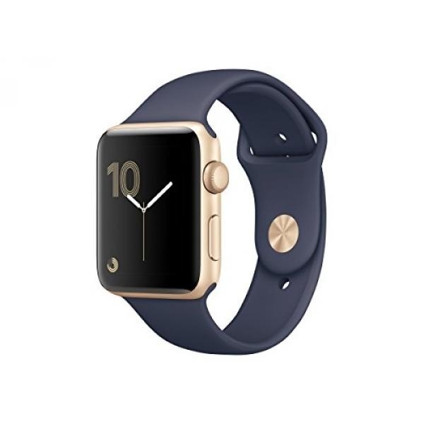 Stay connected in style with the 42mm Apple Watch Series 2, which comes with a gold anodized aluminum chassis and a midnight blue Sport band. Designed for users looking for the next generation of connectivity, Apple's Watch moves your iPhone's apps and functions to your wrist, so you can do more while leaving your phone in your pocket. Apple Watch connects to your iPhone via Bluetooth 4.0 and displays notifications, apps, and more on its 1.5" display. It can also connect directly to the Internet thanks to 802.11b/g/n Wi-Fi. The internal battery lasts for up to 18 hours of normal use and is recharged with an included inductive magnetic charger.Feature