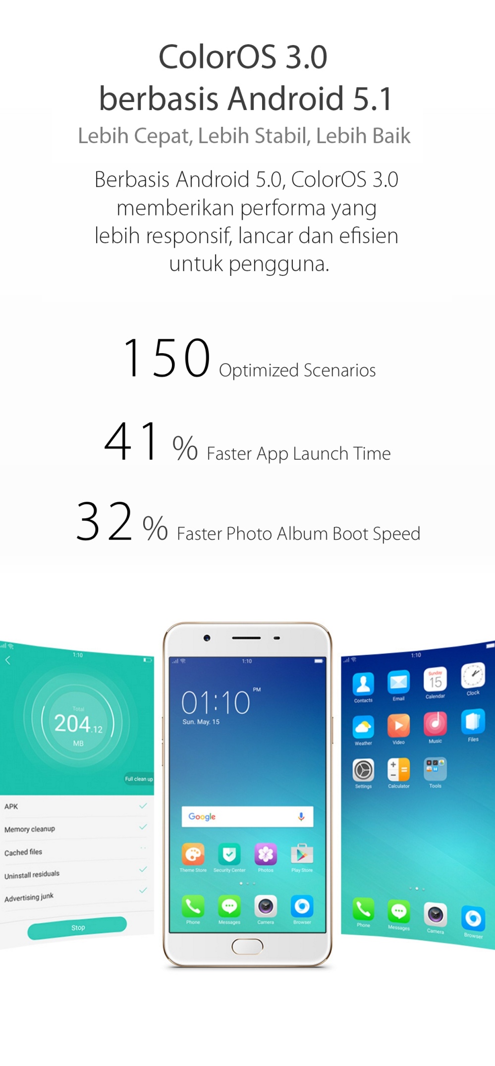 - Operating System : ColorOS 3.0, based on Android Lollypop 5.1