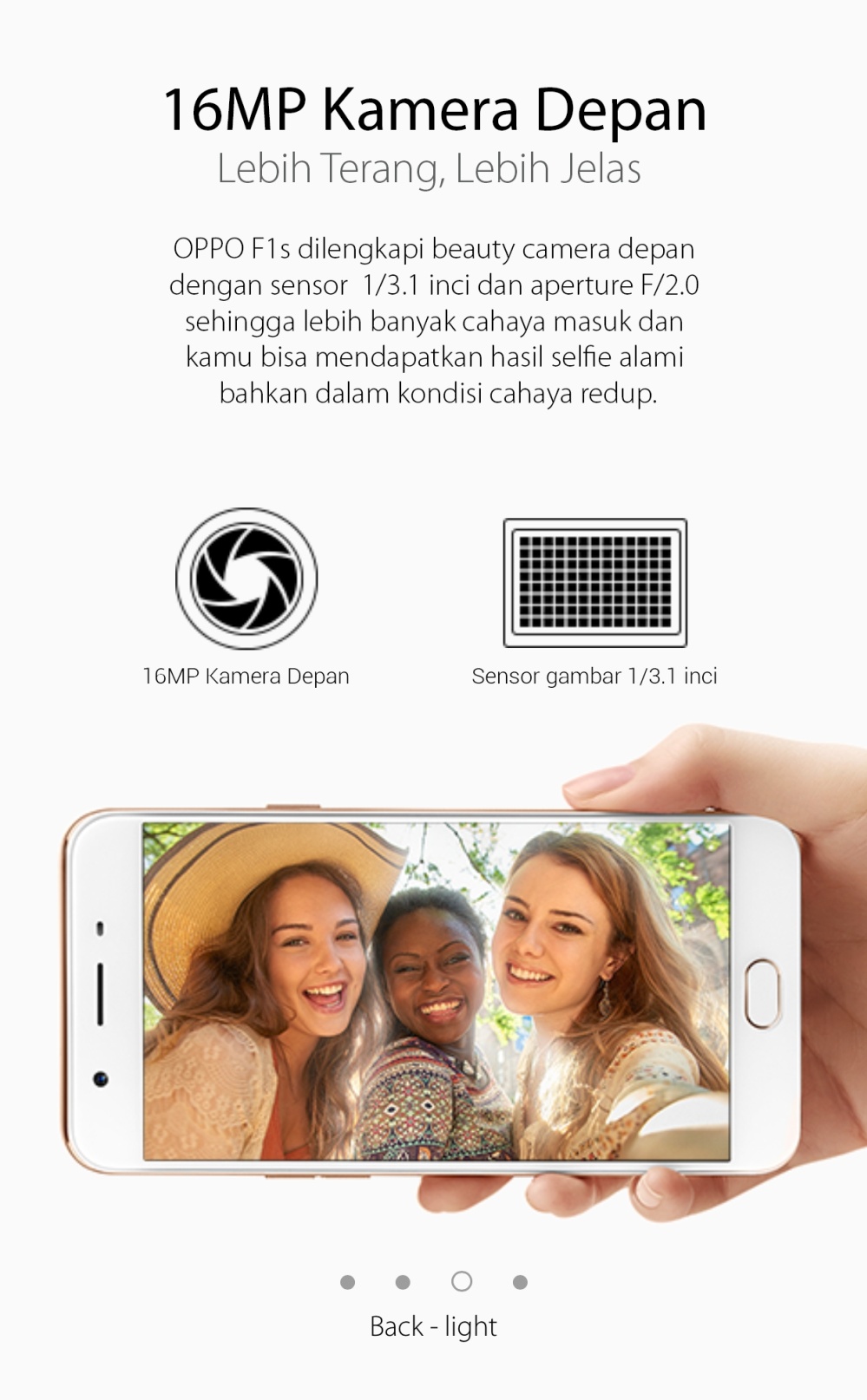 Spesifikasi Oppo F1s Selfie Expert - 4/64 GB - Gold - Kamera Depan 16MP