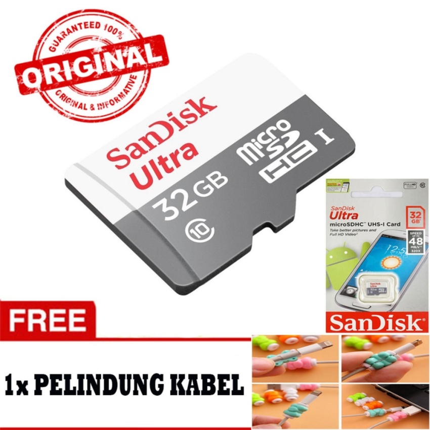 SanDisk Ultra Micro SD 32GB 48MB/s Class 10 UHS + Gratis Pelindung Kabel | Image source: Lazada