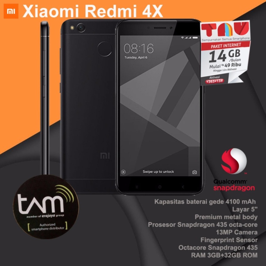 Detail produk dari Xiaomi Redmi 4X RAM 3GB ROM 32GB - Hitam