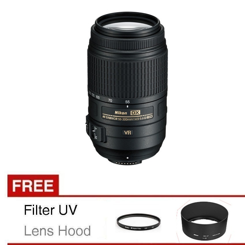 Nikon Lensa AF-S DX 55-300mm f/4.5-5.6G ED VR + Gratis Filter dan Lens Hood | Image source: Lazada