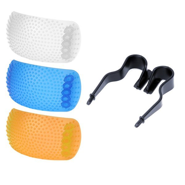 Pop Up Diffuser warna putih dapat dipakai kapan pun dan objek apapun. Pop Up Diffuser warna biru menghasilkan efek miningkatkan kontras warna biru, biasanya digunakan untuk mengambil foto landscape dengan latar langit yang biru, efek flash yang ditembakkan dengan pop-up diffuser akan meningkatkan kontras, sementara pop-up warna orange biasanya digunakan untuk menaikkan kontras/efek sunset atau mengimbangi white balace di ruangan yang yang menggunakan lampu berwarna kuning.