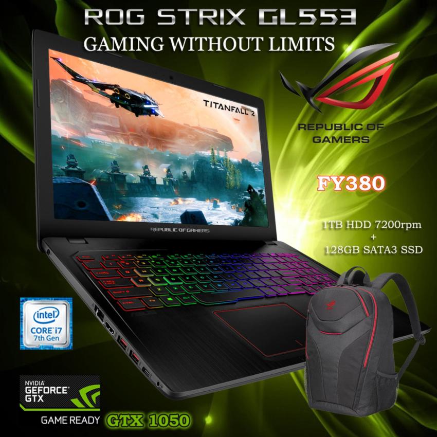 Spesifikasi Asus ROG GL553VD FY380 HDD 1TB 7200rp +128GB SSD + RAM 16GB + ROG Backpack