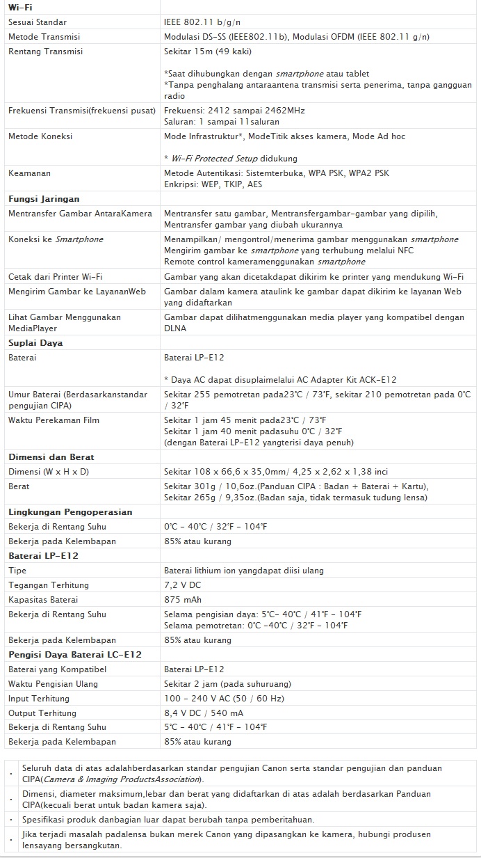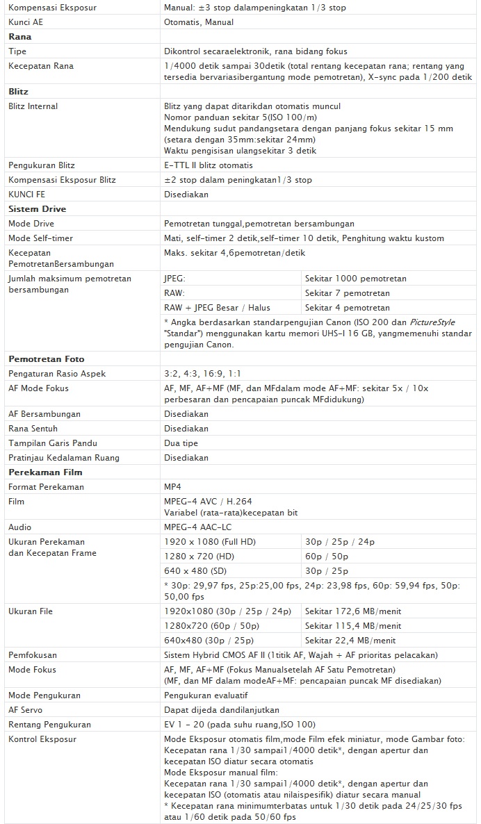 Spesifikasi Canon EOS M10 (Black) + EF-M15-45 IS STM Kit Wifi 18MP CMOS Touchscreen LCD Full HD