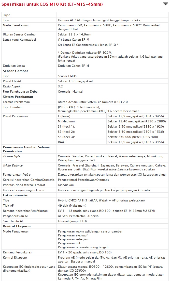 Detail produk dari Canon EOS M10 (Black) + EF-M15-45 IS STM Kit Wifi 18MP CMOS Touchscreen LCD Full HD