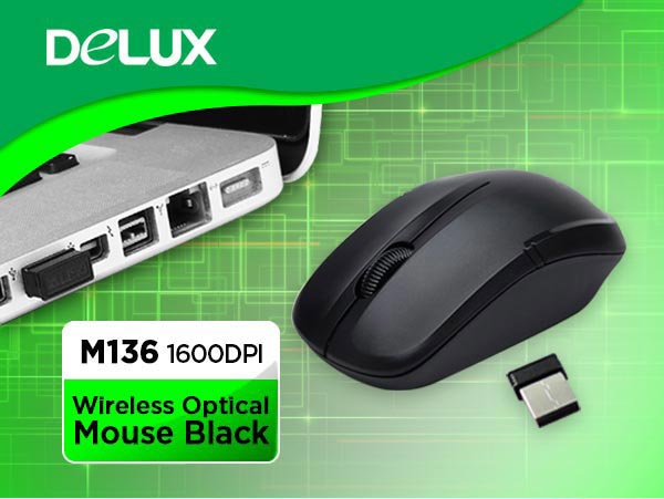 | Model | Delux M136 1600DPI Wireless Optical Mouse Black |