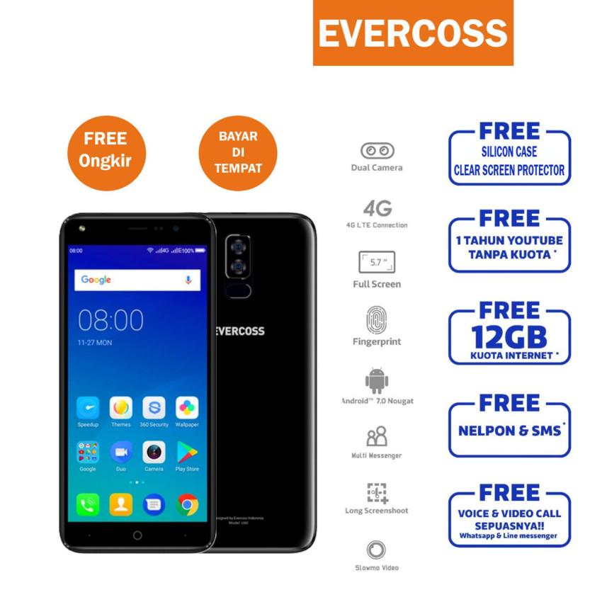 Spesifikasi Evercoss U60 DUAL CAMERA HD 720p 8GB/4G LTE Free Kuota 12GB & Soft Case Ori