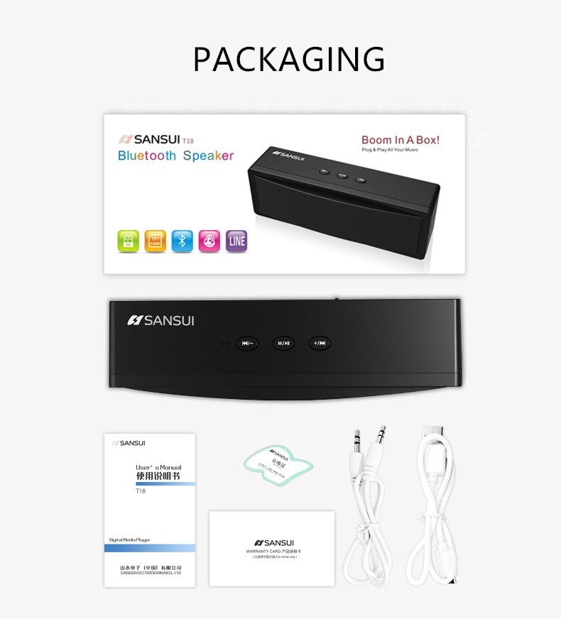 Spesifikasi Sansui T18 Speaker Bluetooth nirkabel 1200 mAh Subwoofer Speaker portabel Unit ganda kartu TF Disk U - International