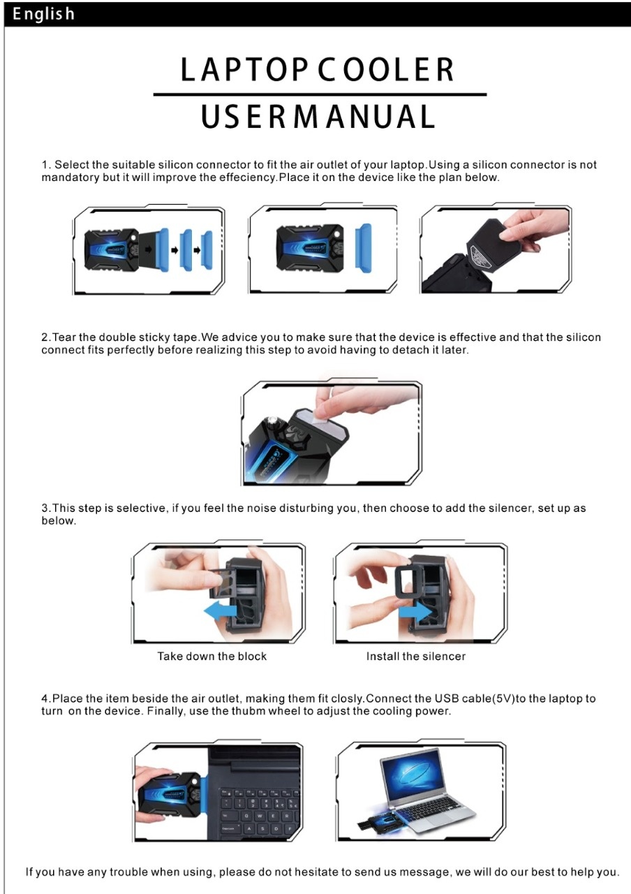 Unique Notebook cooler Lapatop Gaming K27 merupakan pendingin dengan model vacum/menyedot fitur ekstraksi lebih cepat dari udara panas keluar dari sistem berjalan , yang menstabilkan pengoperasian notebook dan memperpanjang masa pakai baterai,3 ukuran yang berbeda dari lengan silikon termasuk untuk ikat ke lubang udara , kompatibel untuk sebagian besar laptop merek utama yang ventilasi pada kedua sisi Kompak , Mari Anda menikmati laptop / notebook tanpa khawatir overheat Cepat mengurangi kedua permukaan dan suhu internal hanya dalam beberapa menit yang jauh lebih baik daripada pendinginan bantalan .Dukungan berbagai ukuran 14inch ke 17 inch laptop/notebook seperti Hp , Dell , Lenovo , Toshiba , Acer , Asus dan Lainnya laptop besar pendingin untuk laptop overheat ketika bermain game.
