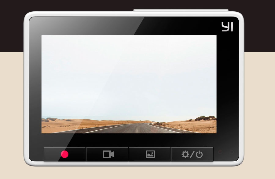 Smart YI CAR CAM is equipped with a widescreen LCD display with an aspect ratio of 16 : 9, for easy preview and video playback. Rich colors, qualitative image (960 × 240 pixels), good dynamic response, absence of interferences, viewing angle is up to 165°. 4 handy functional buttons, thanks to which you can easily control the DVR.