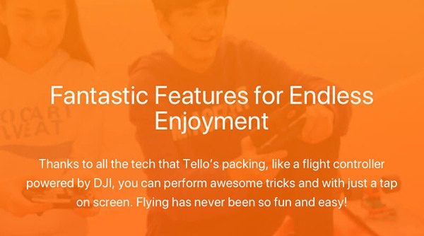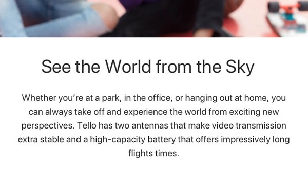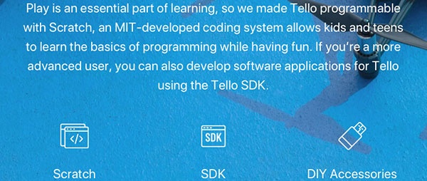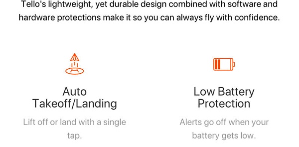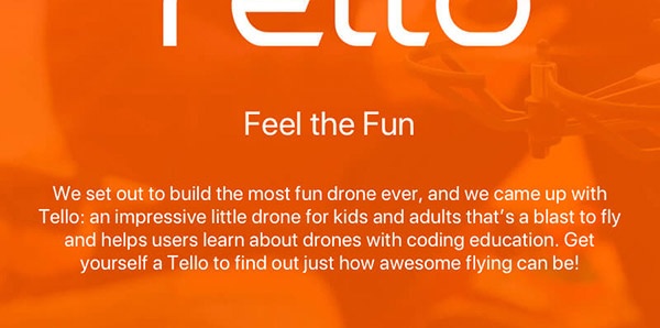 DJI Tello dirancang untuk menjadi drone quadcopter yang lucu, menyenangkan, dan mendidik. Dengan bentuk mungil dan prosesor Intel yang cerdas memungkinkannya melakukan trik udara yang menarik dengan cepat, semua melalui kontrol smartphone. Unduh aplikasi Tello gratis, dengan kontrol intuitif untuk manuver terbang yang bebas seperti apapun. Baterai juga telah disertakan yang nanti akan memberikan daya hingga 13 menit penerbangan.