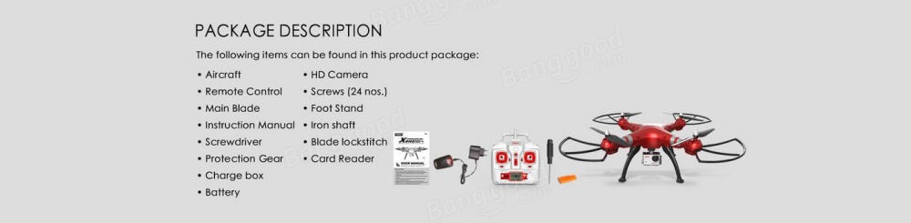 Spesifikasi dari RC Quadcopter Syma X8HG With 8MP HD Camera Altitude Hold Mode 2.4G 4CH 6Axis RTF Merah