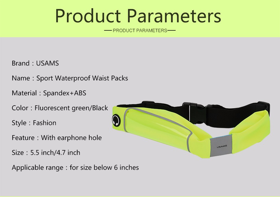 Spesifikasi dari USAMS Adjustable Sport Waterproof Nylon Pouch Tas Ponsel untuk 5.5 Inches Ponsel-Intl